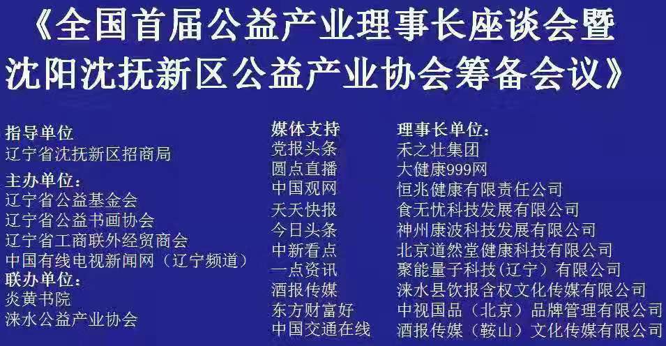 黃淮網(wǎng)(劉德明 姜艷明) 2019年10月26日《全國首屆公益產(chǎn)業(yè)理事長座談會暨遼寧省沈撫新區(qū)農(nóng)業(yè)產(chǎn)業(yè)促進會籌備會議》在沈陽成功召開,遼寧省政協(xié)副主席王本奎、省委辦公廳原主任陳立波 、遼寧省委宣傳部副部長葛本亮、原沈陽軍區(qū)政治部吳瓊、省人大環(huán)資委副主任王帥、蘇家屯區(qū)民政局副局長馬慶良等領(lǐng)導(dǎo)出席本次會議并給予了高度的評價。