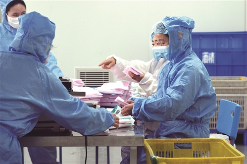 徐州衛(wèi)材衛(wèi)生材料有限公司的醫(yī)療用品生產(chǎn)線。