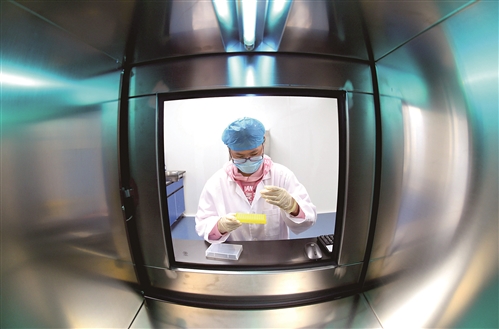 泉山經(jīng)濟開發(fā)區(qū)闊然醫(yī)學(xué)檢驗實驗室工作人員在進行實驗。