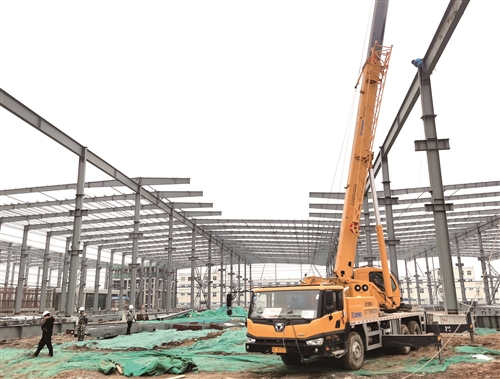 2月25日,在省級重大產(chǎn)業(yè)項目——徐工特種起重機(jī)械項目工地,高高聳立的鋼架下,挖機(jī)旋轉(zhuǎn)舞臂,工人來回穿梭,處處一派緊張有序的忙碌景象。