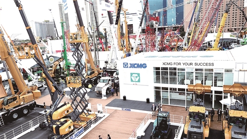 直指蒼穹的金色巨擘,豎起“XCMG”中國工程機械龍頭企業(yè)的光輝旗幟;遒勁有力的鋼鐵臂彎,猶如揮舞著的一雙雙巨手,自信的向北美乃至全球的工程機械同行與客戶發(fā)出徐工人最真誠的問候:“你好Las Vegas!徐工,再次如約而至!” 在疫情全球蔓延的大背景下,徐工依然如約而至,充分顯示了徐工愿與全球客戶“疫”往無前、共克時艱、共謀發(fā)展的信心與決心。
