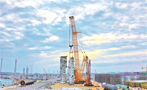 徐工4000噸級(jí)履帶式起重機(jī)XGC88000在作業(yè)中。 通訊員 李寧 攝