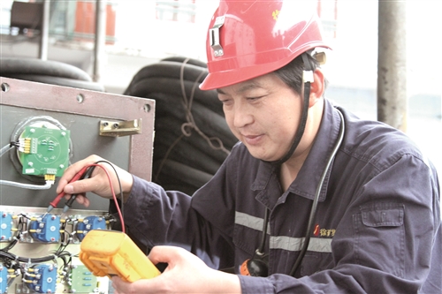 夏伯黨在測試機電設(shè)備參數(shù)。 徐報融媒記者 王耀 攝