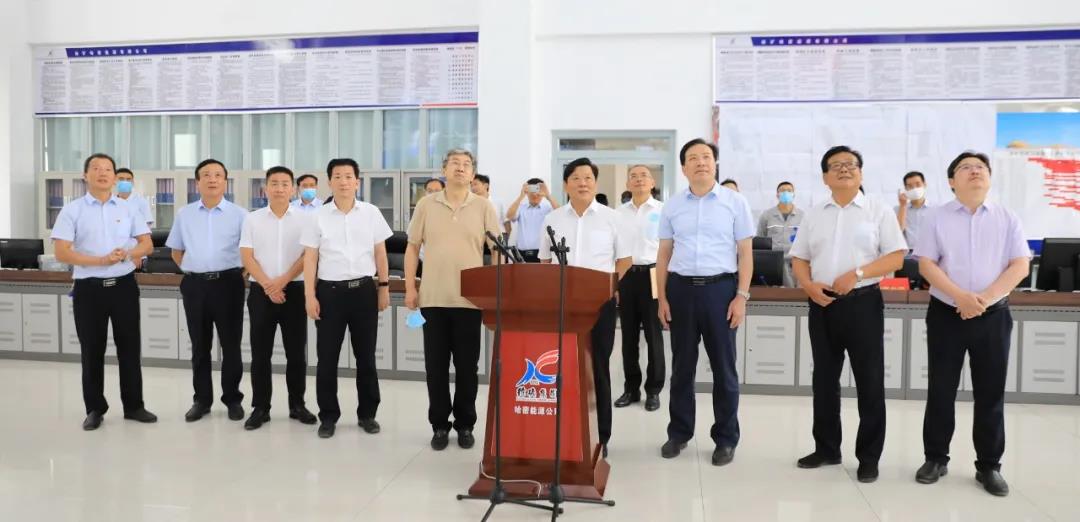 啟動(dòng)儀式前,馮興振一行來到哈密能源公司調(diào)度指揮中心、副斜井井口、國(guó)電哈密煤電開發(fā)公司集控中心、汽機(jī)主廠房等地調(diào)研,觀看了哈密能源公司建設(shè)歷程牌板展。