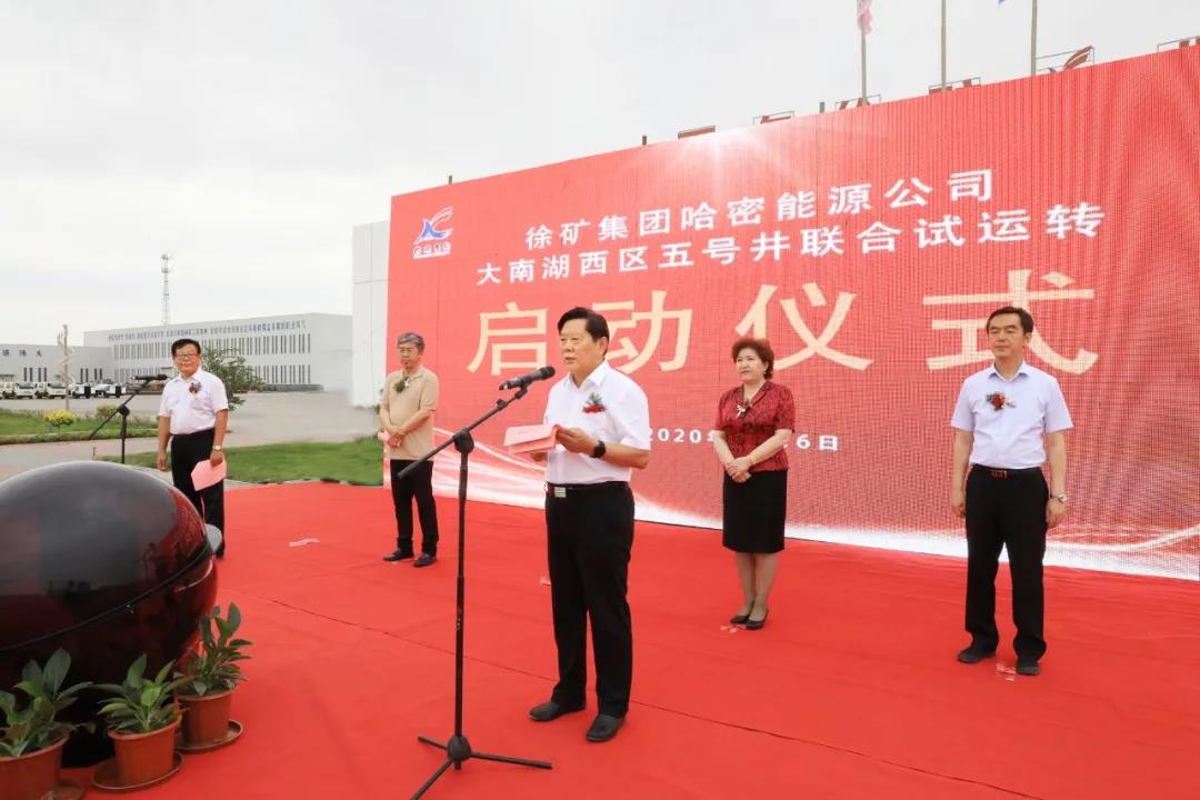 黃淮網(wǎng)(孔文) 7月16日,徐礦集團(tuán)哈密能源大南湖西區(qū)五號(hào)井聯(lián)合試運(yùn)轉(zhuǎn)正式啟動(dòng),標(biāo)志著哈密能源公司正式從基建礦井邁入生產(chǎn)礦井,一座特大型現(xiàn)代化礦井在大漠戈壁建成。徐礦集團(tuán)黨委書記、董事長(zhǎng)馮興振,哈密市委副書記、市長(zhǎng)祖木熱提·吾布力,國(guó)家能源集團(tuán)新疆公司黨委書記、董事長(zhǎng)劉晉冀出席啟動(dòng)儀式。