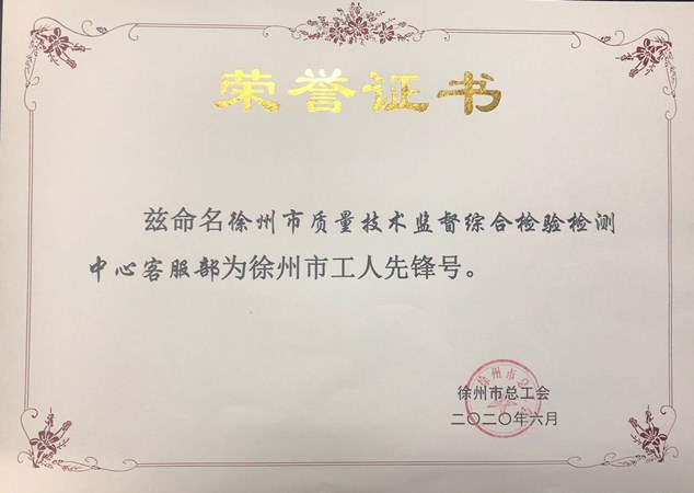 徐州市綜合檢驗(yàn)檢測(cè)中心客服部榮獲市級(jí)“工人先鋒號(hào)”稱號(hào)