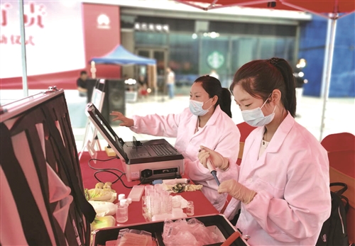食品安全快檢人員現(xiàn)場(chǎng)為群眾進(jìn)行農(nóng)殘檢測(cè)。 徐報(bào)融媒記者 季芳 攝