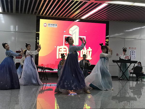 同時(shí),徐州地鐵運(yùn)營(yíng)公司在1號(hào)線彭城廣場(chǎng)站舉辦了盛大的綠色出行宣傳暨開通一周年慶活動(dòng)。古語有云:中國(guó)有禮儀之大,故稱夏;有服章之美,謂之華。徐州地鐵將傳承中華民族傳統(tǒng)美德,以“漢風(fēng)古韻”為核心,為廣大市民朋友進(jìn)行漢文化展示,宣傳綠色出行理念,活動(dòng)共分為“漢風(fēng)古樂演奏”、“漢服及漢文化禮儀展示”、“舞蹈表演”以及“現(xiàn)場(chǎng)互動(dòng)”四部分。伴隨著清澈入耳的古典韻律,漢服小姐姐現(xiàn)身會(huì)場(chǎng),瞬間吸引了市民的駐足觀望;古箏、中阮、二胡、電子琴碰撞出的柔美旋律,和小姐姐們婀娜曼妙的舞姿,仿佛將廣大市民帶回到兩千多年前的漢王朝;更有工裝小姐姐俏皮的步伐,靈動(dòng)的舞姿,贏得了市民的陣陣歡呼。