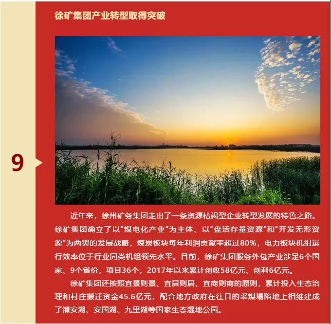 從跟跑到領(lǐng)跑:“三大樣本”破解全國行業(yè)發(fā)展難題。三年來,徐礦集團聚焦主業(yè)發(fā)展,創(chuàng)出資源枯竭型企業(yè)轉(zhuǎn)型樣本,先后布局建設(shè)了六大能源基地,推動產(chǎn)業(yè)結(jié)構(gòu)由一煤獨大向煤基高級化升級;聚焦持續(xù)發(fā)展,拓展服務(wù)外包,創(chuàng)出關(guān)閉礦井重生樣本,開展以煤礦技術(shù)管理為主的服務(wù)外包,打響了中國煤電國際品牌,成為“一帶一路”合作的典范;聚焦綠色發(fā)展,主動融入地方盤活存量資源、修復(fù)治理生態(tài),在采煤塌陷區(qū)上相繼建成了潘安湖、安國湖、九里湖等國家濕地公園,創(chuàng)出了衰老礦區(qū)變綠水青山的樣本。