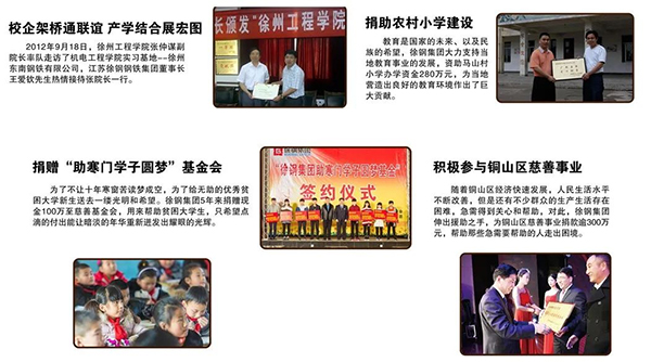上善若水,大愛無疆。自成立以來,徐鋼集團追求發(fā)展的同時,將自身定位為有責任、有愛心的鋼鐵企業(yè)。徐鋼人堅定認為企業(yè)的發(fā)展離不開社會的支持,感恩社會、回饋社會是企業(yè)的責任與使命。