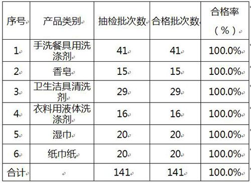 本次抽查包括手洗餐具用洗滌劑、香皂、衛(wèi)生潔具清洗劑、衣料用液體洗滌劑、濕巾和紙巾紙等6大類家用產(chǎn)品,抽查范圍覆蓋全市的主要銷售企業(yè),共抽查疫情防控相關(guān)日用消費(fèi)品141批次。經(jīng)檢驗(yàn),141批次全部合格,合格率為100%。