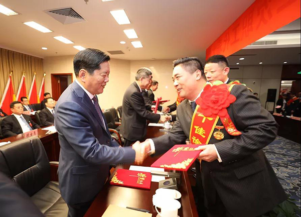 馮興振、石炳華等領(lǐng)導(dǎo)為先進集體、勞動模范和“六個十佳”代表頒獎。