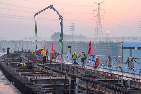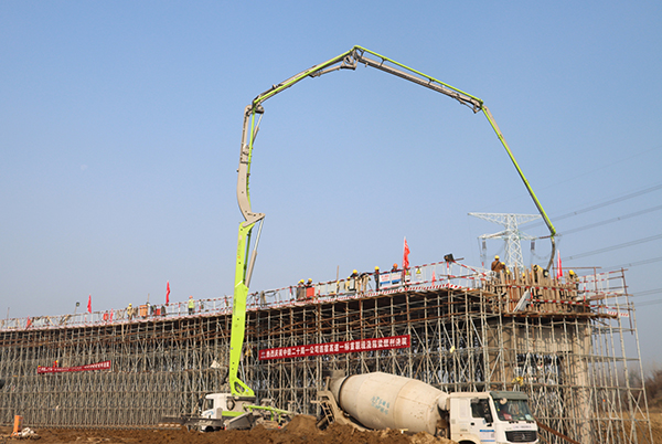 黃淮網(wǎng)(王桂英) 10月25日上午6時(shí),隨著泵車將混凝土徐徐送入模具的聲響,由中鐵二十局一公司承建的宿連高速公路宿豫至沭陽段工程1標(biāo)項(xiàng)目沭陽南樞紐互通首聯(lián)現(xiàn)澆箱正式開始澆筑,標(biāo)志著該項(xiàng)目進(jìn)入了會(huì)戰(zhàn)關(guān)鍵時(shí)刻。