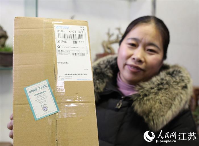 商家在花木種苗快遞包裹上張貼“誠信標(biāo)簽”。丁華明攝