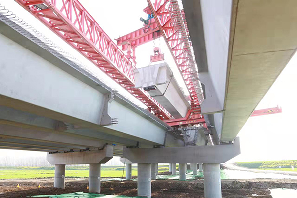 大澗河大橋全長570m,設(shè)計19跨,共需架設(shè)箱梁152片,自今年一月初開始施工,歷時兩個半月圓滿完成架設(shè)任務(wù),為橋面連接張拉及橫隔板、濕接縫澆筑施工提供出多個作業(yè)面。奪得宿連建指“夯實‘一帶一路’基礎(chǔ) 打造標(biāo)桿示范工程”勞動競賽首個節(jié)點目標(biāo)。
