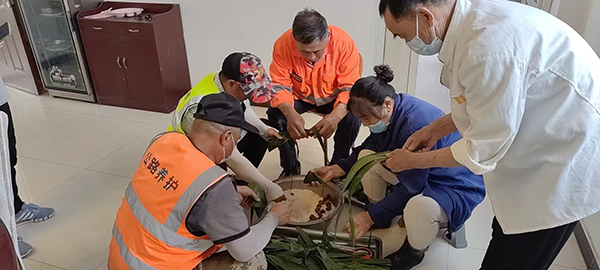 “今天我們工區(qū)開展了這個端午節(jié)活動,大家一起包粽子、聊聊天、品美食,就是讓大家體會到我們工區(qū)大家庭的溫馨和諧,加深了工友們之間的感情和歸宿感,也讓大家真正體驗到了咱們傳統(tǒng)文化的魅力與快樂。”鹿莊養(yǎng)護工區(qū)主任王輝表示。