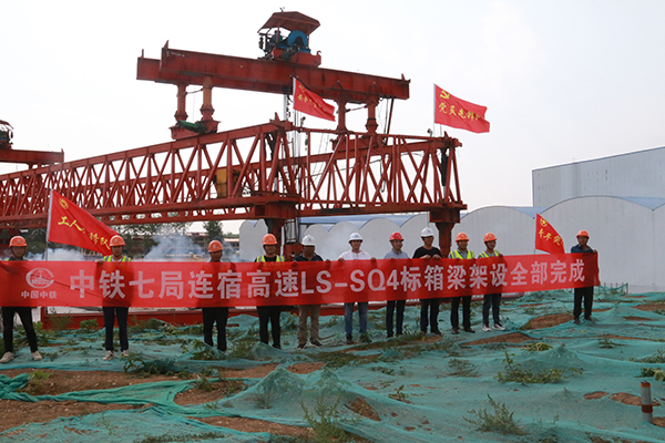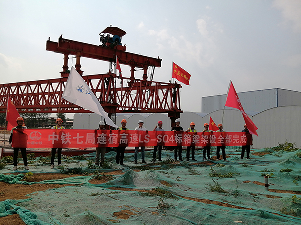 黃淮網(wǎng)(馮毅 李勇) 6月15日下午,隨著主線上跨X151大橋最后一榀箱梁的穩(wěn)穩(wěn)落下,標志著由中鐵七局負責施工的連宿高速4標項目5座橋梁、614片架梁施工全部結束。