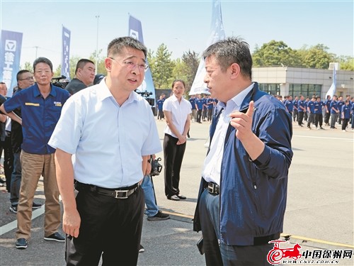 徐工集團(tuán)黨委書(shū)記、董事長(zhǎng)楊東升(左)調(diào)研徐工重大產(chǎn)業(yè)項(xiàng)目。