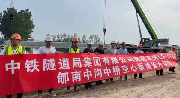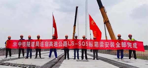 LS-SQ5標最后一座橋梁郇河中溝大橋箱梁安裝完成