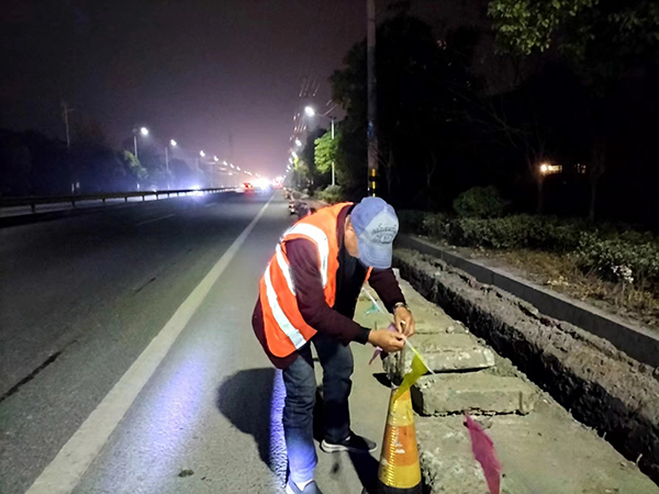 睢寧公路站:夜間巡查作業(yè)現(xiàn)場 保障道路安全暢通