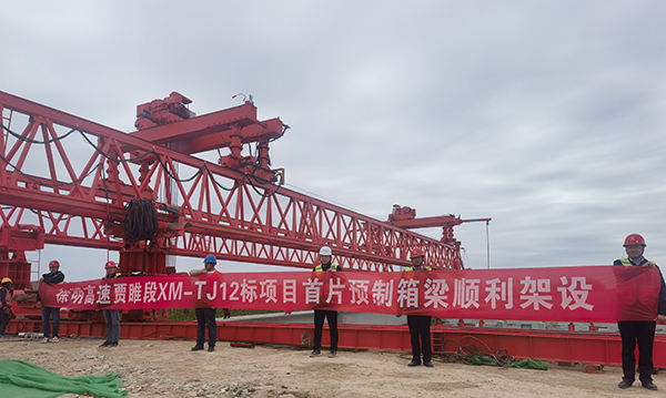 徐州東部繞越高速公路12標(biāo)首榀預(yù)制箱梁順利安裝完成