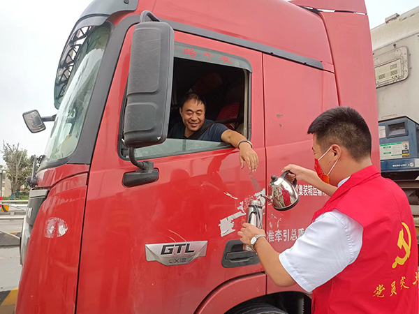 針對連日來的高溫天氣,收費站志愿者服務隊在收費廣場設置便民服務臺,向駕駛及運輸聯(lián)合收割機的駕乘人員提供消暑解渴的綠豆湯、維修工具、防暑藥品等便民服務,切實為農(nóng)機駕駛員提供保障服務。