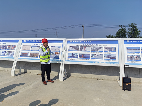 黃淮網(wǎng)(黃佳康 杜海鑫) 6月30日,徐州東部繞越高速公路(徐州至明光高速公路賈汪至睢寧段)項(xiàng)目辦召開橋梁防撞護(hù)欄施工及小型構(gòu)件預(yù)制施工標(biāo)準(zhǔn)化現(xiàn)場(chǎng)觀摩交流會(huì)。全線參建單位主要負(fù)責(zé)人、技術(shù)管理人員及相關(guān)班組負(fù)責(zé)人參加。