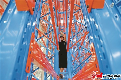 角落里,藍(lán)橙相間的智能立體倉(cāng)庫(kù)耀眼醒目,技術(shù)工人們正按照“分毫不差”的要求進(jìn)行精準(zhǔn)調(diào)試,并接入信息集成系統(tǒng)反復(fù)測(cè)試。