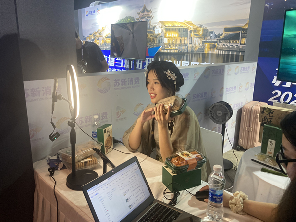 在現(xiàn)場,一群食客圍在一家月餅攤位前,等待品嘗即將出鍋的鮮肉月餅。“大家平常買到的大多是豬肉餡月餅,今天我們帶來的是改良過的蘇式牛腩月餅,牛肉原料來自新疆本地牧場,請到專門做鮮肉月餅的蘇州老師傅制作,產(chǎn)品既保留了鮮肉月餅層層起酥的口感,又將肉品升級為鮮嫩多汁的牛腩。”手機屏幕前,蘇州洪鼎網(wǎng)絡(luò)科技有限公司主播向秋靈正熱情洋溢地推介產(chǎn)品。