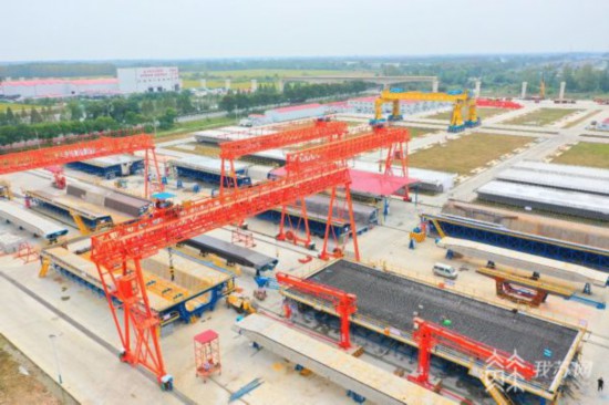 寧淮城際鐵路1標(biāo)段梁場(chǎng),施工人員正抓緊生產(chǎn)預(yù)制梁