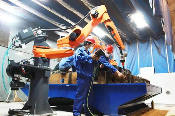 機器轟鳴、人頭攢動……走進華東機械公司生產(chǎn)車間,一臺臺焊接機器人有序運作著,工人忙碌的身影來回穿梭,一派熱火朝天的景象。