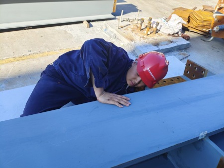 為了確保工程質(zhì)量,構(gòu)件拼裝前,徐州市檢驗(yàn)檢測中心須對所有零部件及焊縫質(zhì)量進(jìn)行逐一檢驗(yàn)檢測,檢驗(yàn)檢測合格后方可拼裝。時(shí)間緊、任務(wù)重,為了高效完成檢驗(yàn)檢測任務(wù),該中心技術(shù)團(tuán)隊(duì)“兵分兩路”,“一路”在實(shí)驗(yàn)室有條不紊、緊張有序地開展原材料及產(chǎn)品檢驗(yàn)檢測,“另一路”則對焊縫質(zhì)量實(shí)行24小時(shí)“駐廠檢測”,不分晝夜,隨時(shí)隨地滿足檢驗(yàn)檢測需求。
