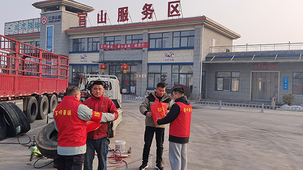 黃淮網(wǎng)(王冠宇) 春節(jié)期間,徐州市睢寧G104官山服務(wù)區(qū)守好睢寧“南大門”,全體工作人員認真開展“兩保一強”專項行動,堅守崗位,履職盡責,做好暖心服務(wù),黨員干部踐行初心,帶頭一線作戰(zhàn),盡顯擔當作為。