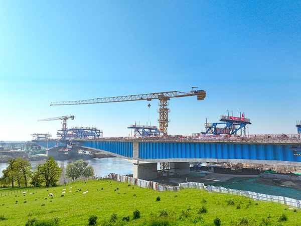 京杭運河特大橋全長1202.2m,主橋上部結(jié)構(gòu)采用波形鋼腹板預(yù)應(yīng)力混凝土連續(xù)箱梁,最大跨徑135m,是徐州東部繞越高速公路建設(shè)工程的重點控制性工程,也是徐州地區(qū)目前跨徑最大的波形鋼腹板橋梁,預(yù)計2024年8月完成雙幅合龍。該橋的建成將有利推進波形鋼腹板橋梁在徐州地區(qū)的應(yīng)用。