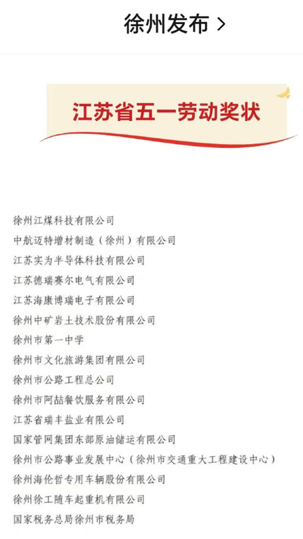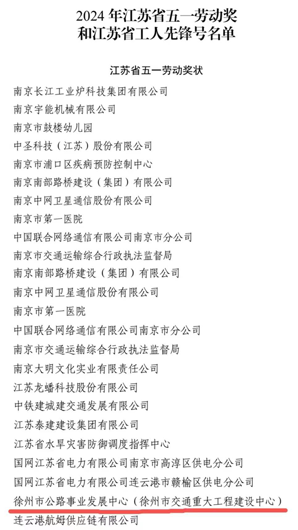 徐州市公路事業(yè)發(fā)展中心榮獲江蘇省五一勞動獎狀