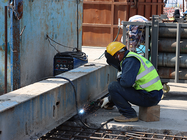 本次施工的合龍段為單箱單室直腹板形式,單幅箱梁長3.2m,高4m,共32.8m³混凝土。為確保特大橋順利合龍,項目部組織管理人員及作業(yè)人員多次分工序、分工種進行合龍段施工安全技術交底。施工過程中認真查驗模板安裝、鋼筋綁扎、勁性骨架鎖定、合攏段配重、波形鋼腹板安裝焊接及混凝土澆筑等各道工序,強化現(xiàn)場安全技術保障,嚴格把控關鍵工序施工質(zhì)量,確保成橋線形和實體質(zhì)量。監(jiān)測數(shù)據(jù)由監(jiān)控單位與項目部分別量測、共同校核。經(jīng)現(xiàn)場實測,大橋中跨合龍誤差控制在2mm以內(nèi),實現(xiàn)了毫米級誤差精準合龍對接。