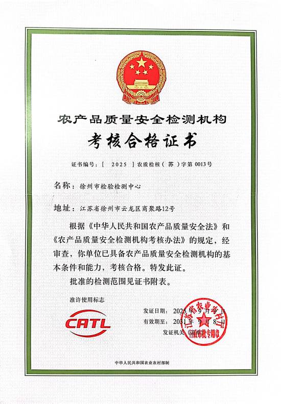 徐州市檢驗檢測中心實(shí)現(xiàn)農(nóng)產(chǎn)品“CMA+CATL”雙認(rèn)證全覆蓋