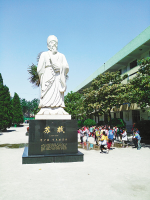 ▲蘇軾小學(xué)的漢白玉蘇軾雕像