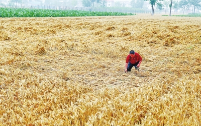 人民網(wǎng)鄭州7月1日電(李東風(fēng)、石國(guó)慶)6月初,本是華北夏收的節(jié)骨眼。河南延津縣一場(chǎng)突如其來(lái)的大風(fēng)冰雹天氣,讓陳學(xué)中在僧固鄉(xiāng)東史固村的千畝農(nóng)場(chǎng)受了災(zāi)。滿眼望去,原本金燦燦的麥穗倒成一片,有的麥子已經(jīng)發(fā)芽,看著讓人心疼。