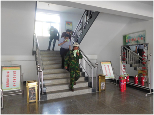 火情模擬演練中該所人員迅速有序地撤離辦公樓
