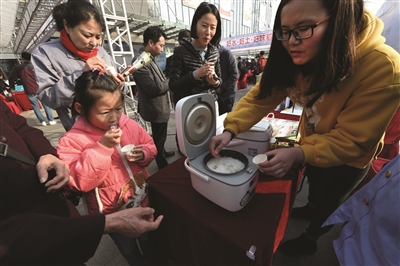 在展銷會(huì)現(xiàn)場(chǎng),一對(duì)小夫妻帶著五六歲的兒子來(lái)“搶新米”。男主人對(duì)記者說(shuō),家里老人通過(guò)揚(yáng)子晚報(bào)了解到糧油市場(chǎng)有新米展銷活動(dòng),早早地就開(kāi)車來(lái)了,一共買了4袋淮安新米,有漢耕牌的,也有永寧糧油的稻蝦香米。他說(shuō),這次采購(gòu),不僅能保證全家吃到放心可口的新米,而且一直到春節(jié)都不需要再買米了。女主人通過(guò)從家里帶來(lái)的揚(yáng)子晚報(bào)和手機(jī)掃碼,還領(lǐng)取了兩份新米禮盒——“米磚”,一家三口其樂(lè)融融。