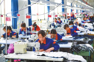 光山寒羽尚服飾有限公司車間內(nèi)一片繁忙的生產(chǎn)景象。 本版圖片均為本報(bào)資料圖片 |