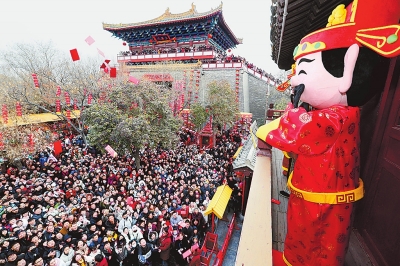 2月9日,農(nóng)歷正月初五,有“迎財神”的習俗。開封市清明上河園內(nèi),數(shù)名“財神”組團為游客發(fā)紅包、送祝福。本報記者王錚攝 |