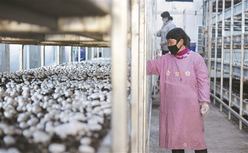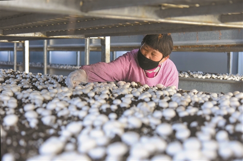 3月6日,在睢寧縣官山鎮(zhèn)的太陽能光伏基地,村民正在太陽能光伏板下的蘑菇大棚里采摘蘑菇。 該縣大力推廣建設分布式光伏、村級光伏電站和農光互補等項目,形成建設1個光伏項目,可獲得“發(fā)電收益分配+大棚出租收益+農產(chǎn)品銷售收益分紅+基地務工收益”的“1+N”光伏扶貧模式,受益低收入人口3萬多人。徐州日報全媒體記者 孫井賢 攝 |