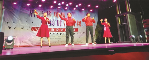 徐州日報訊(全媒體記者 楊旭東 通訊員 閆紅艷)4月8日晚,由江蘇省文化和旅游廳、江蘇省文明辦主辦的“倡導移風易俗,弘揚時代新風”江蘇省群眾文藝巡演第二輪首站走進賈汪區(qū)潘安湖街道馬莊村,為村民帶來一場主題鮮明的文藝演出,來自全村及周邊的近300名機關干部、黨員及群眾觀看了演出。