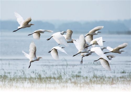 圖為 良好的生態(tài)使駱馬湖成了候鳥的天堂。