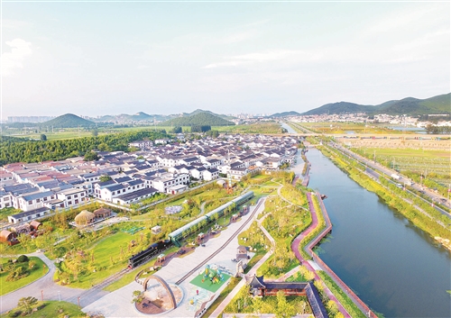 8月4日,航拍鏡頭下的銅山區(qū)峨山村,一排排白墻黛瓦的建筑錯落有致,古色古香。整個村莊在藍(lán)天白云的映襯下,在綠水青山的環(huán)抱中顯得清幽靜謐,宛若世外桃源。徐州日報全媒體記者 孫井賢 攝 |
