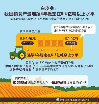 白皮書說,70年來,在中國共產(chǎn)黨領(lǐng)導下,經(jīng)過艱苦奮斗和不懈努力,中國在農(nóng)業(yè)基礎十分薄弱、人民生活極端貧困的基礎上,依靠自己的力量實現(xiàn)了糧食基本自給,不僅成功解決了近14億人口的吃飯問題,而且居民生活質(zhì)量和營養(yǎng)水平顯著提升,糧食安全取得了舉世矚目的巨大成就。
