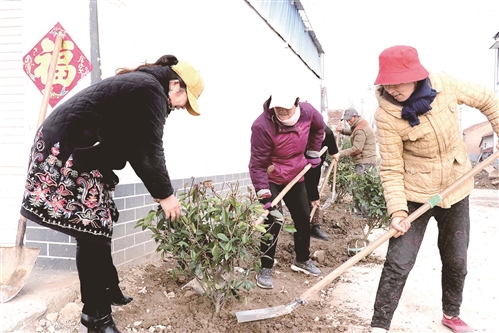 3月10日,銅山區(qū)棠張鎮(zhèn)村民在房前屋后添新綠,美化家園。