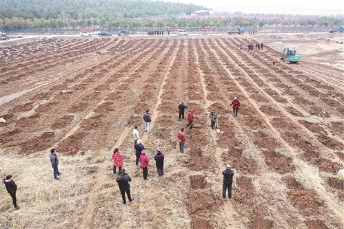 呂梁景區(qū)白塔湖小鎮(zhèn)北山坡已挖好植樹坑,等待種植樹苗。 通訊員 李玉龍 攝